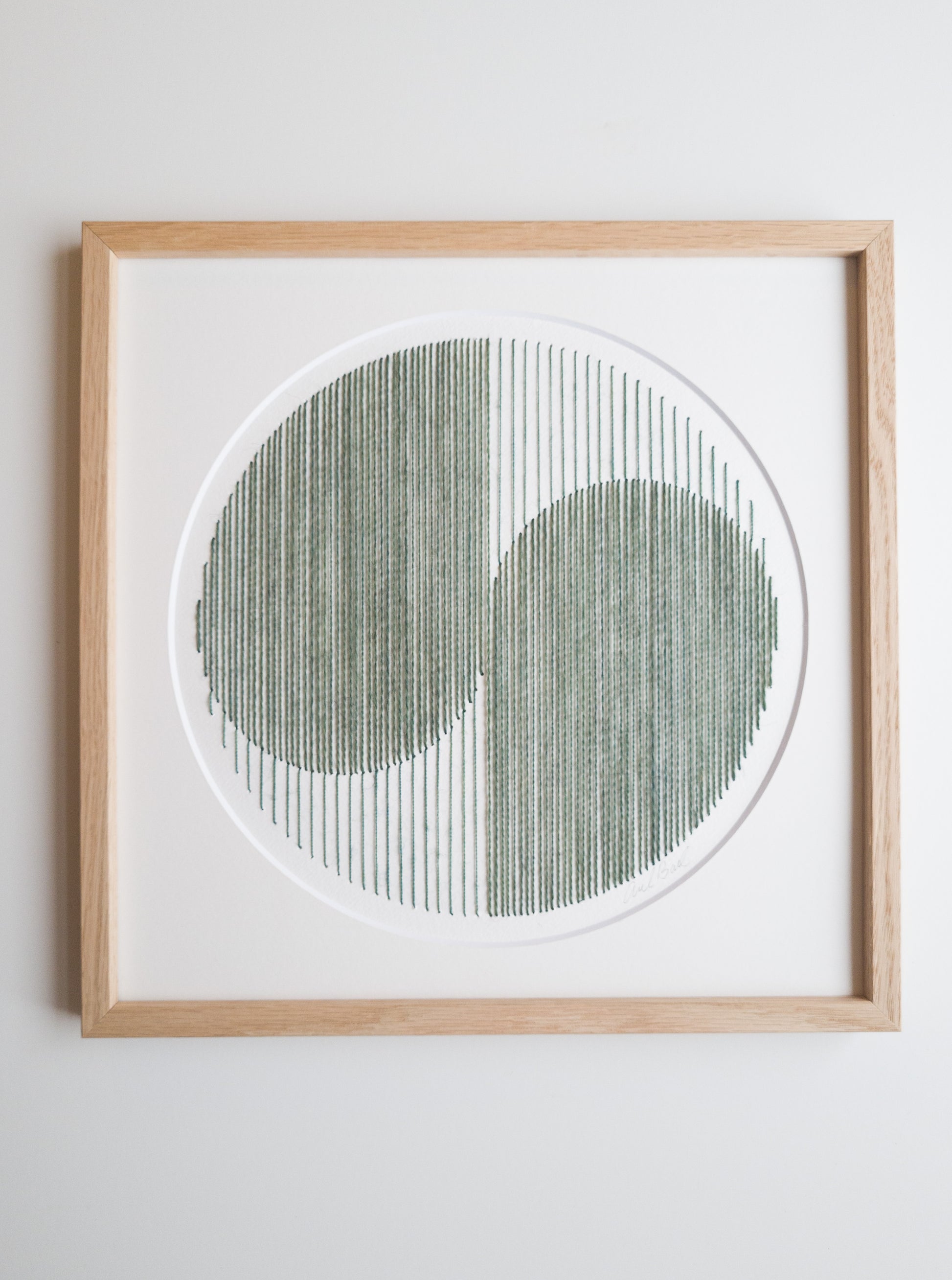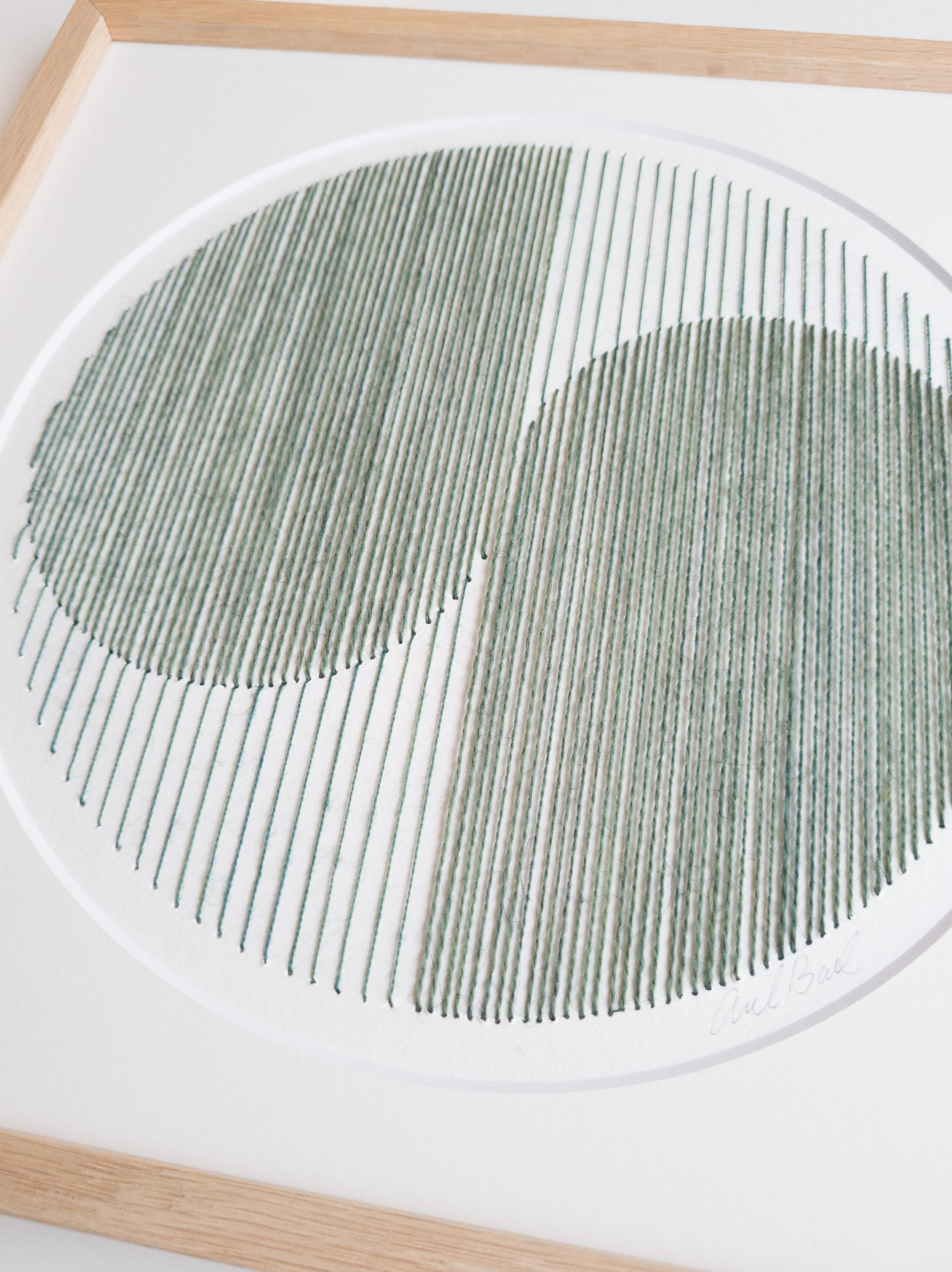 Paper embroidery made on 300gr watercolor paper with plant-coloured wool yarn.
