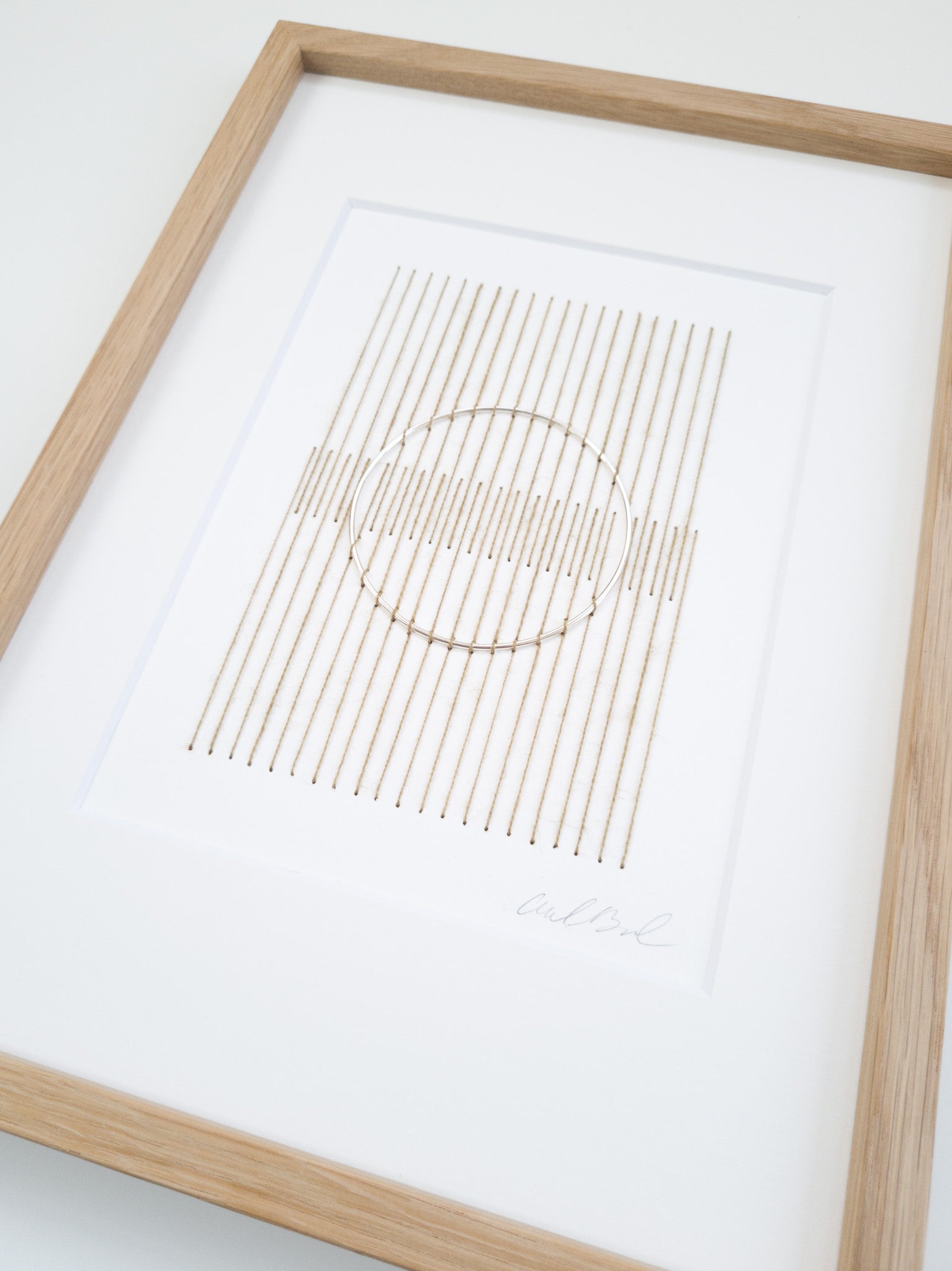 Paper embroidery made on 300gr quality paper with plant-coloured wool yarn.